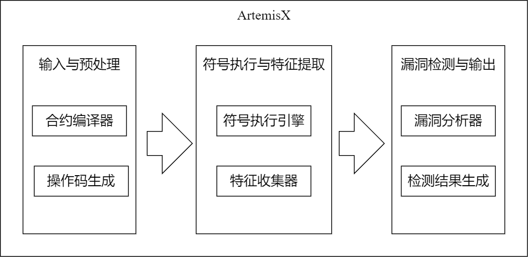 如图所示,WANA主要由四个功能模块组成,分别是输入与预处理模块、符号执行模块以及漏洞检测模块与结果分析模块。如下是它们的简介: