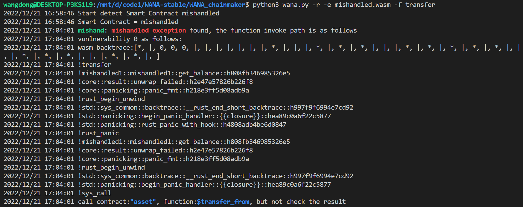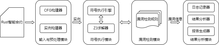 结果分析模块会进行日志记录、结果分析和报告生成。最终生成针对于Rust智能合约的漏洞检测报告。