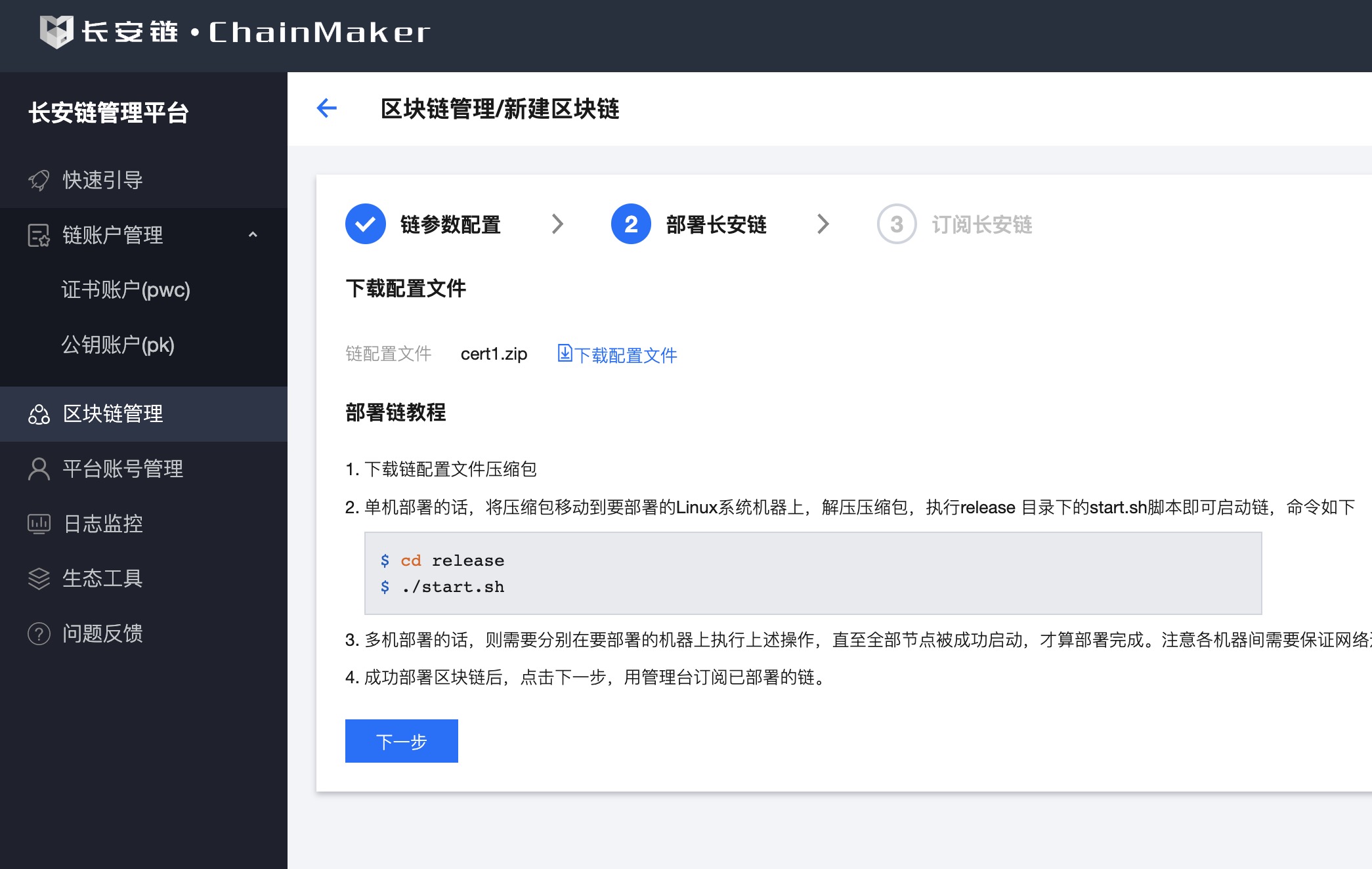 下载链配置以zip包为准,zip包包含对应的链配置文件和部署脚本