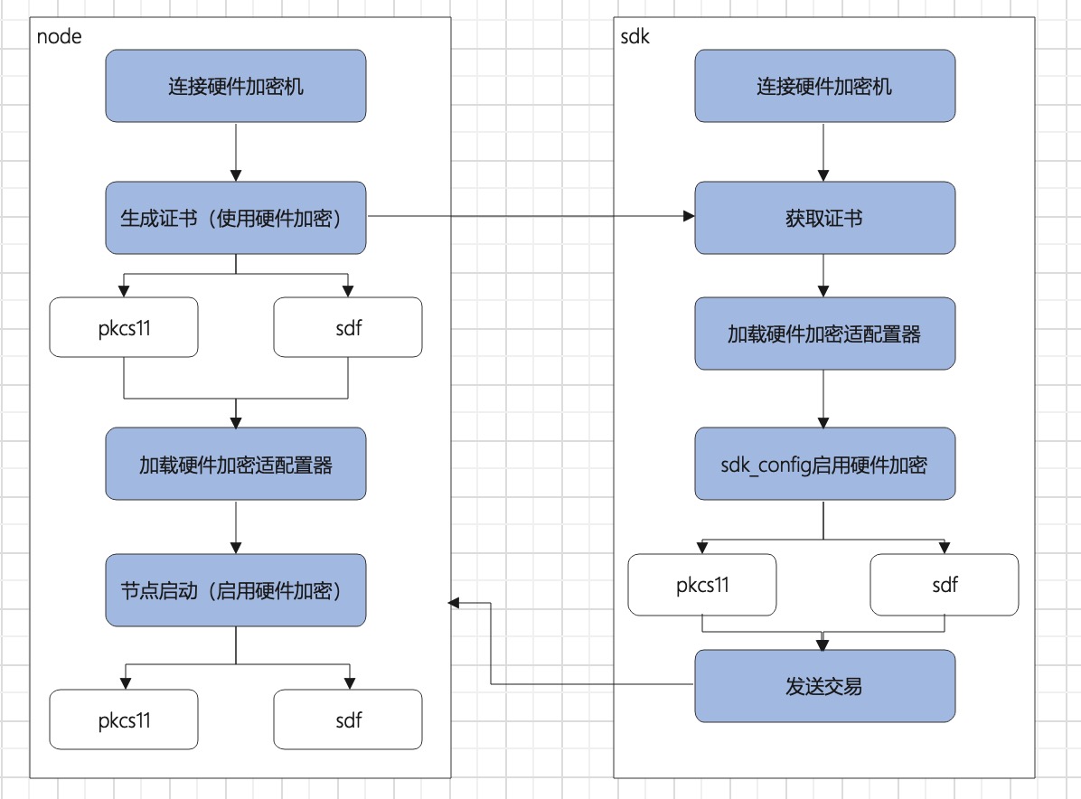 2.3.0版本的chainmaker的硬件加密支持两种标准:pkcs11和sdf(以下配置项统一以pkcs11配置为例,sdf参考配置说明)。
