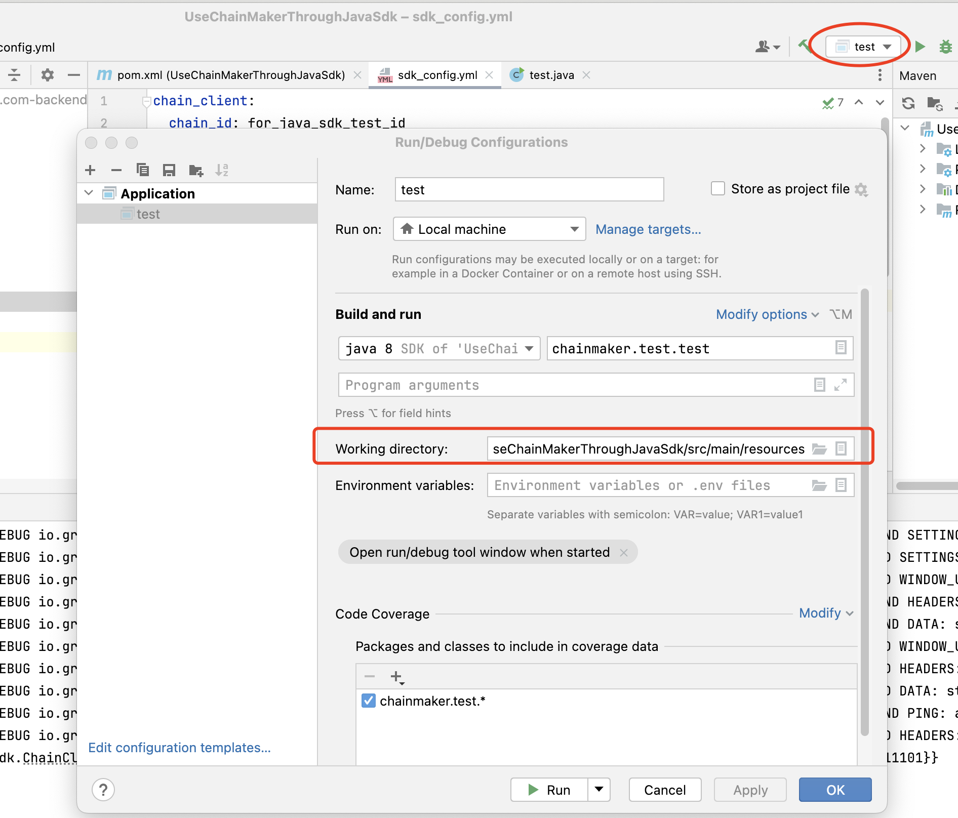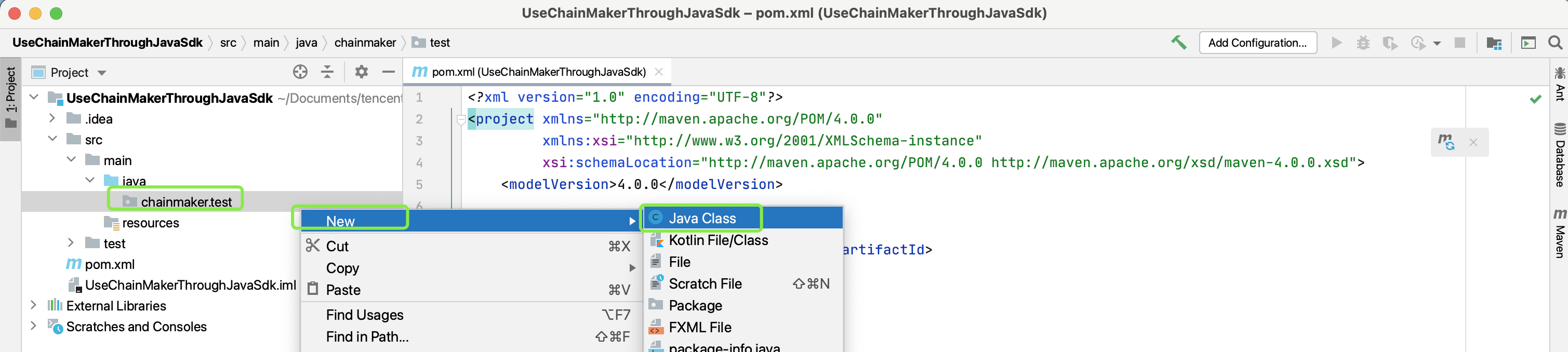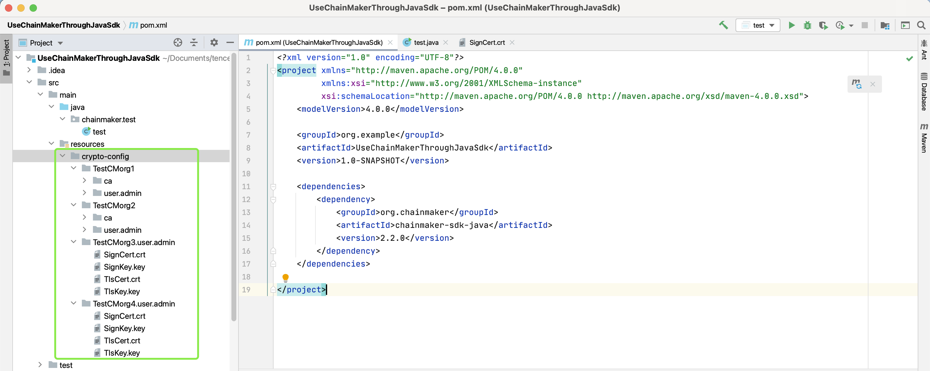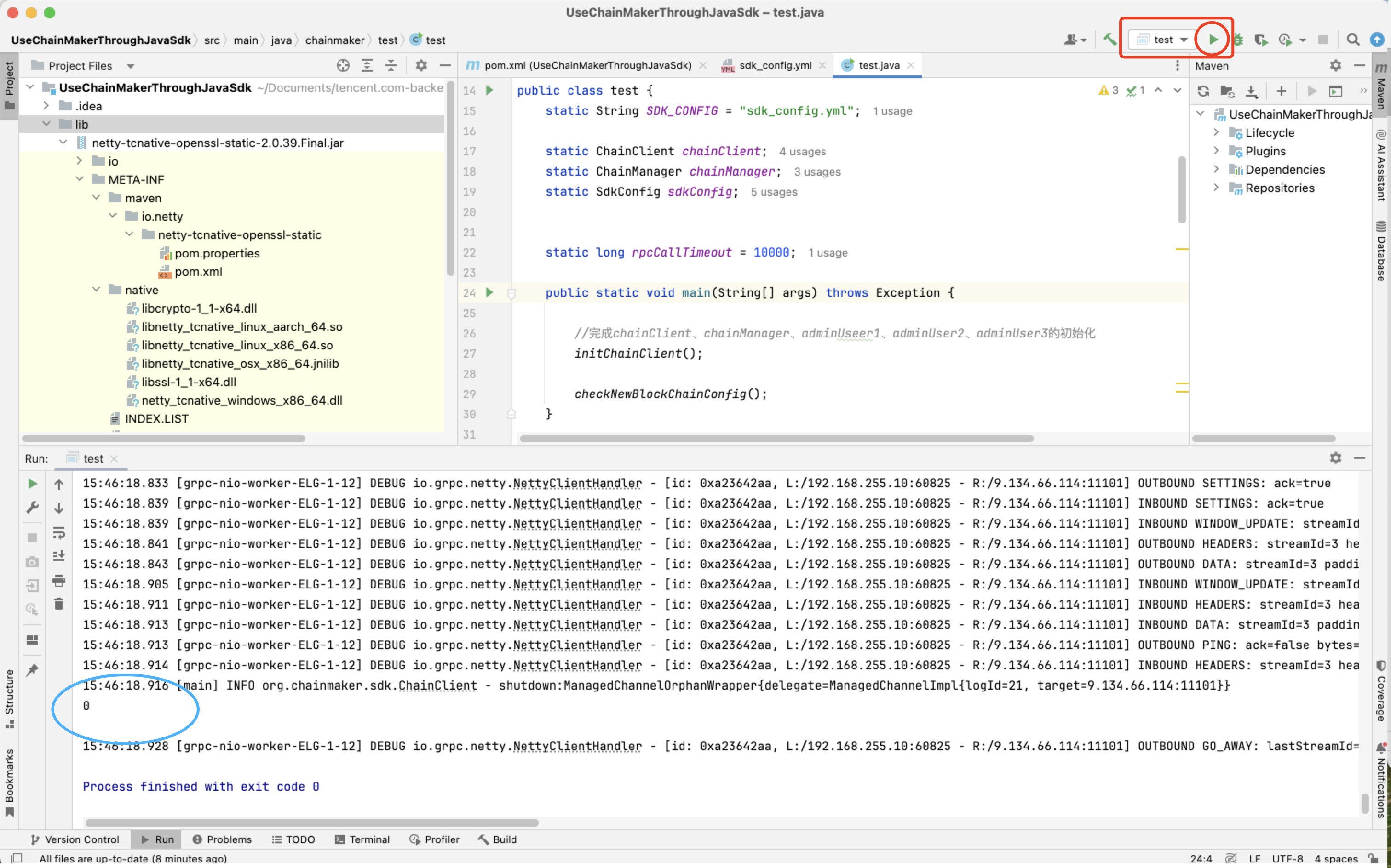 通过上述操作已确保区块链环境、java环境、idea环境一切就绪,下面进行chanmaker-sdk-java相关的配置。