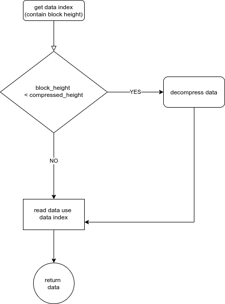 归档中心已压缩数据的高度做比较。若低于压缩高度,说明已压缩,检查是否解压过,若未解压,则解压,然后取出数据即可;若大于压缩高度,则直接从文件中读取数据即可