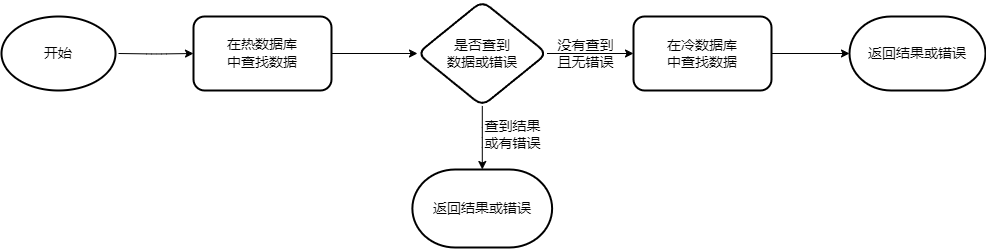 当进行数据写入时,会直接写入热数据库,以实现更高的存储效率。当进行数据读取时,运行逻辑如下, 首先(若设置使用缓存,则优先在缓存内寻找数据)尝试从热数据库中寻找是否存在所需数据,若没有找到则继续从冷数据库中读取并返回最终结果。