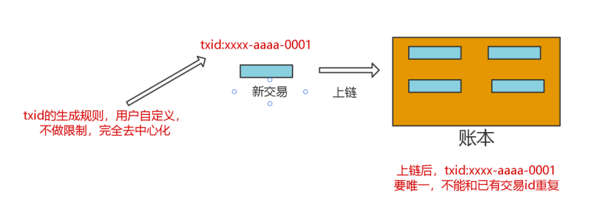 txID生成规则,必须去中心化,由用户任意生成,不做限制;