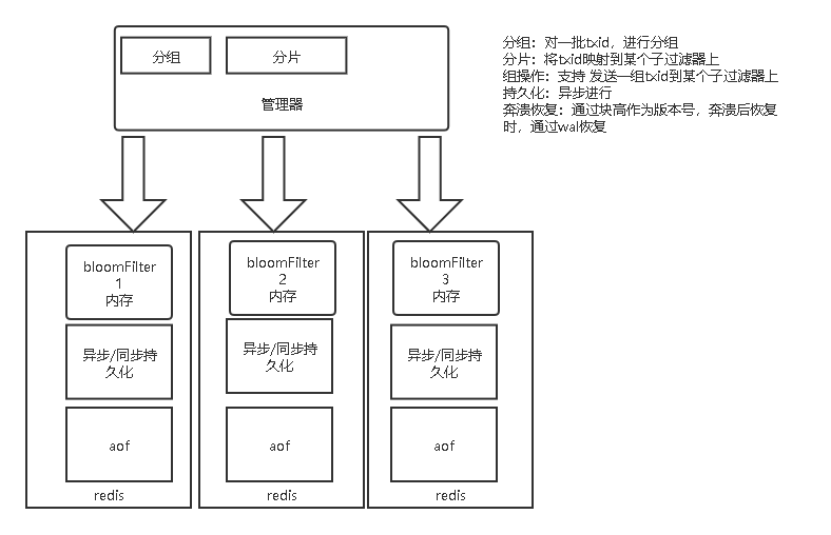 支持海量交易。通过一个管理器管理多个redis-bloom节点,完成数据的sharding和聚合。